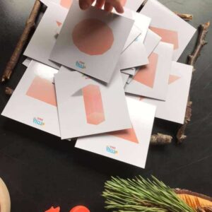 - Send kids on a shape hunt to find things that match the shape on the card. Observe together the structure of the shape, count the sides, count the corners, run your fingers along the edges of the shape – all of this helps the form of the shape to sink into the child’s mind.